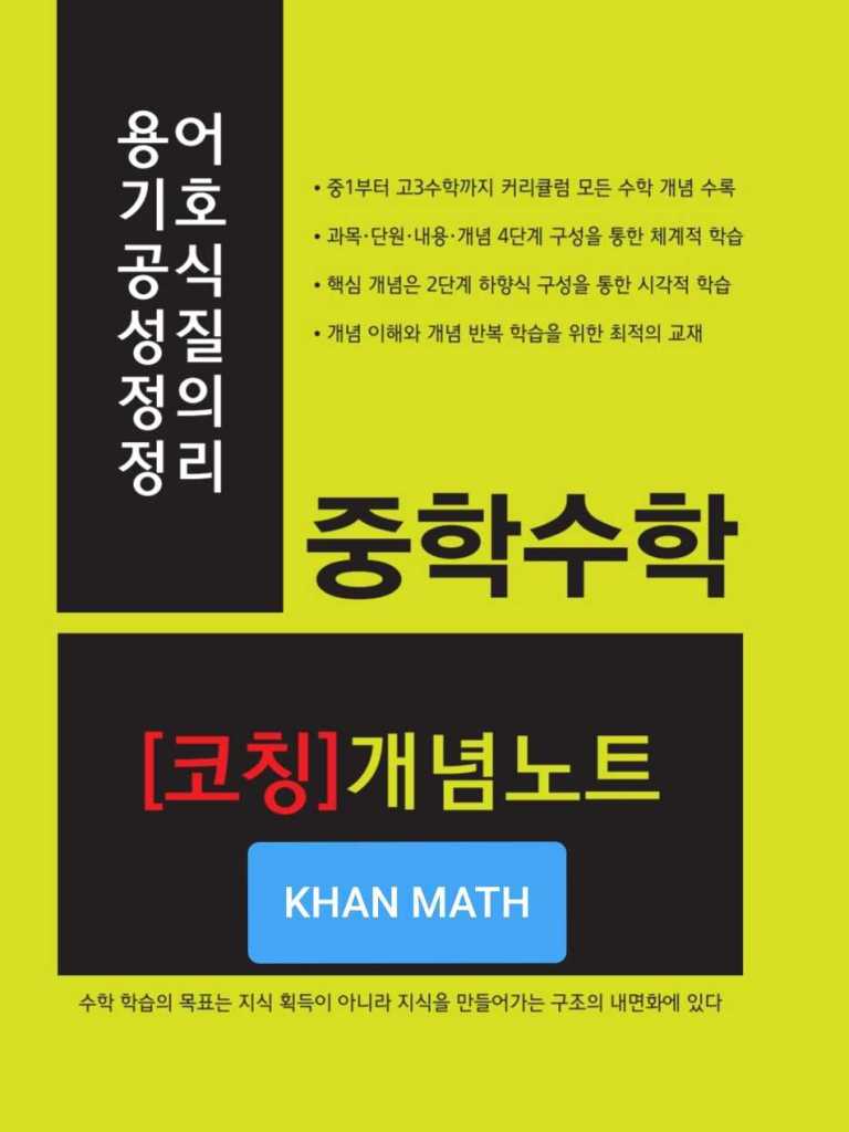 중학수학과 고등수학 필수 개념을 모두 수록하였습니다. 중학수학 개념노트, 고등수학 개념노트로 제공합니다.